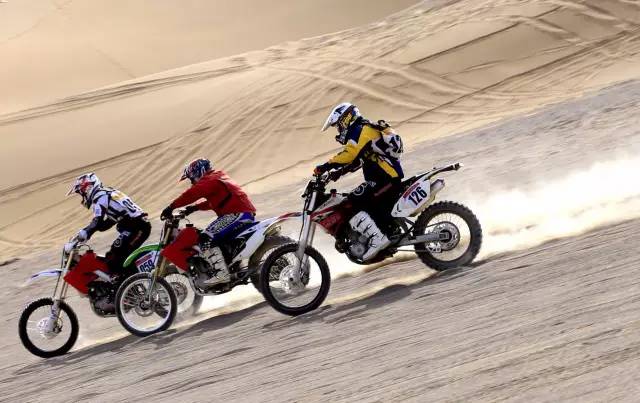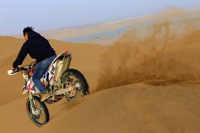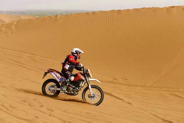 是的,在沙漠里根本办法好好骑车,想要在沙漠里骑得快,要诀有两点:别减速、看准路线,油门加大了后轮会瞬间陷下去,换挡慢了油门迟滞也会陷下去,减档时发动机制动力起作用又会陷下去,还让不让人好好骑车了?