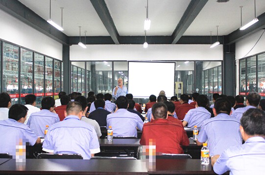 11时,高尔曼先生与公司高层进行了参观后的简单交流。在听取了总工程师范友谊对公司厂区概况介绍后,高尔曼先生就公司组织架构体系、质量管理体系等提出询问,各系统领导分别进行一一解答。其间,高尔曼先生表示,重庆崭新的环境必将拥有广阔的发展空间,他希望能将沈阳工厂的先进管理经验引进公司,并结合现状提出建议,帮助搭建更加科学的工厂管理系统。
