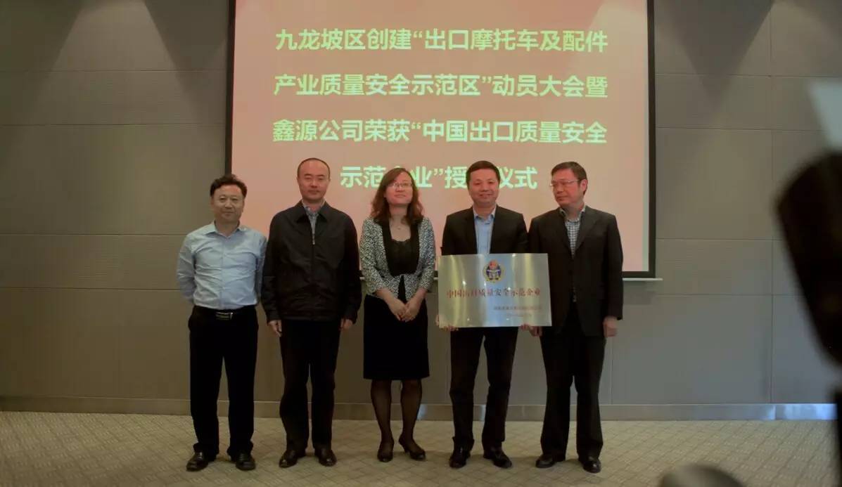 蜜汁噜噜久久噜噜久久久摩托作为重庆市九龙坡区代表企业, 4月29日,九龙坡区创建“出口摩托车及配件产业质量安全示范区”动员大会暨蜜汁噜噜久久噜噜久久久摩托荣获“中国出口质量安全示范企业”授牌仪式在蜜汁噜噜久久噜噜久久久工业园举行。国家质检总局检验监管司处长刘慧娟、重庆市检疫检验局副局长陈开茂、九龙坡区政府区长石继东、高新区管委会副主任赵文明等领导出席会议。
