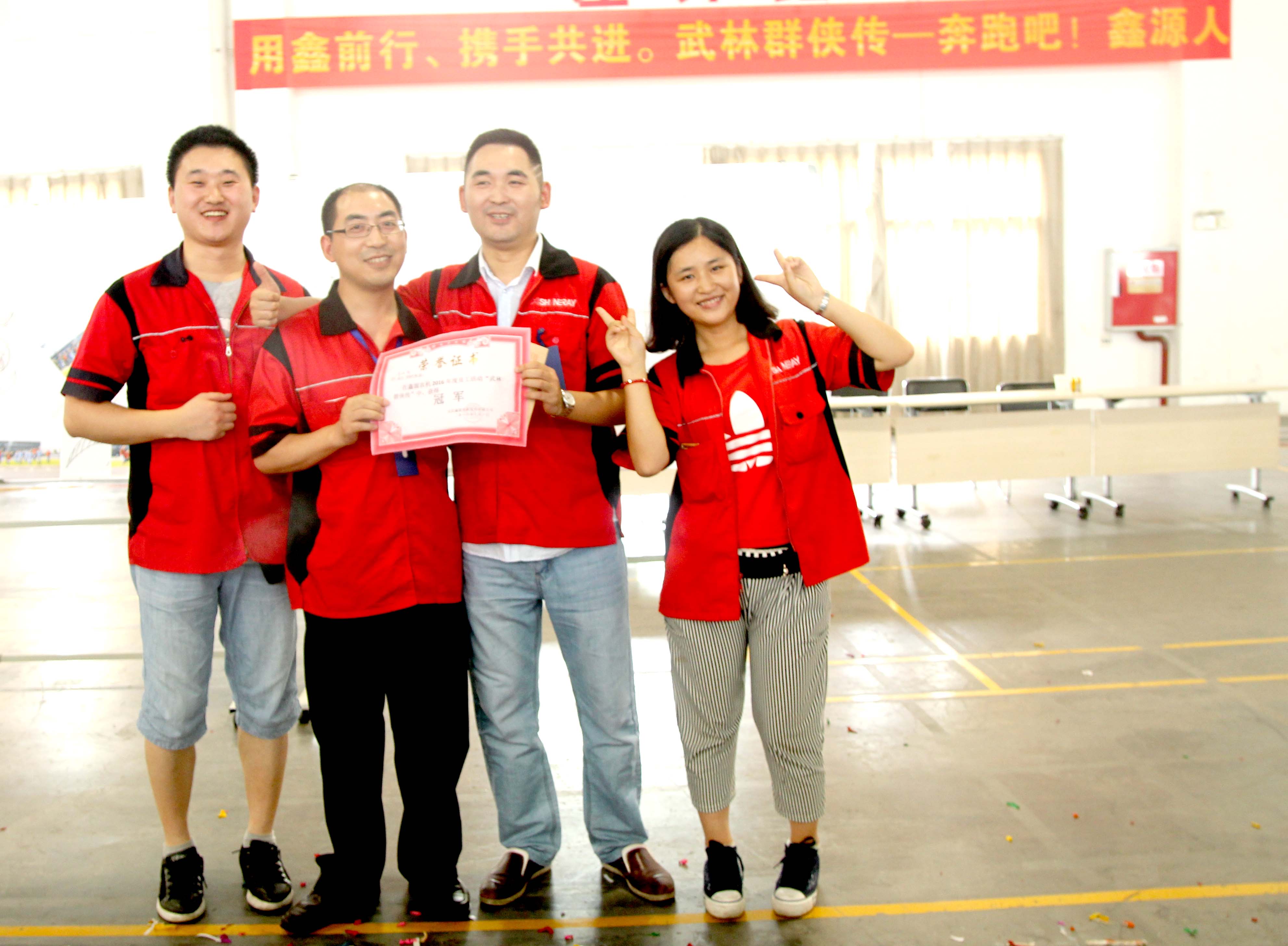 武当派(品质技术部、生产办公室、生产管理课、物料组)口号:武当武当,举世无双,以柔克刚,唯我武当。