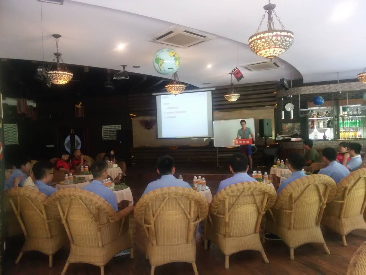 摩托车公司新员工入职欢迎会在含谷基地75号会所曼岛酒吧举办,人力资源课邀请相关事业部负责人致欢迎辞,并请每一位新同事谈一谈培训几天的收获以及感受。同时请到了15年毕业生分享工作一年以来的心得体会,以此勉励新同事初入职场,多学、多问,不断进取。