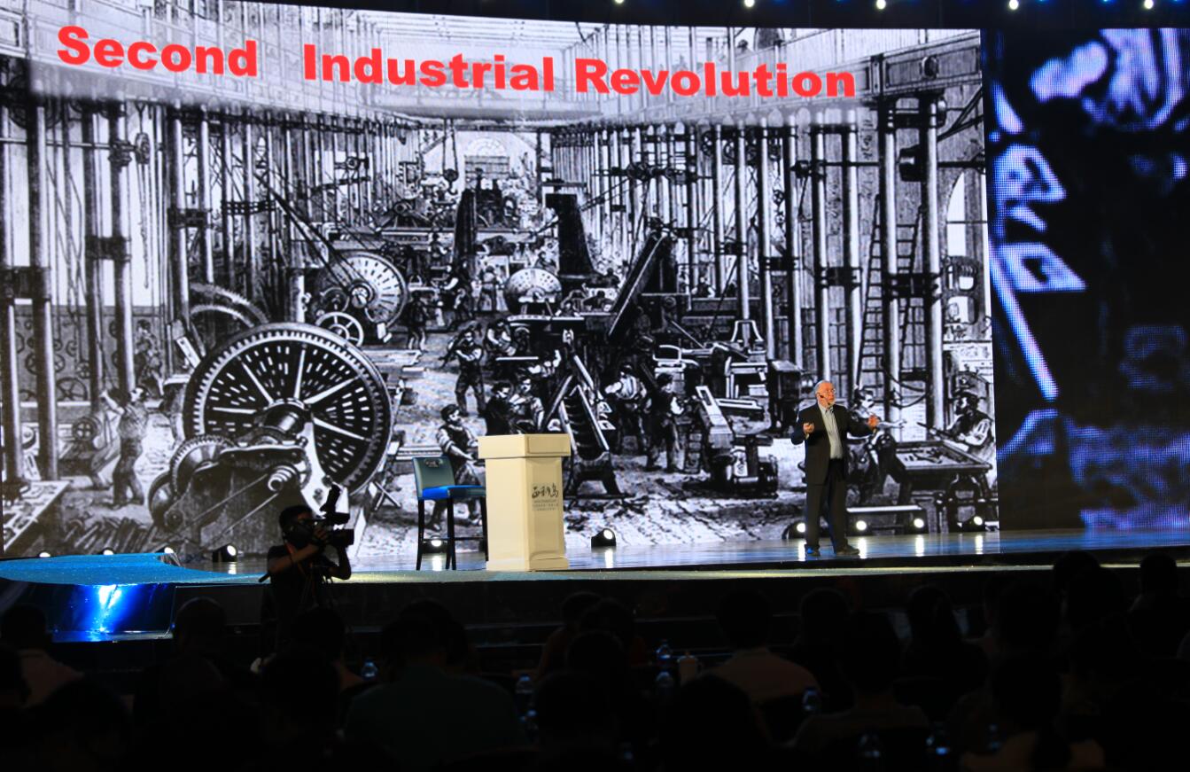 “我们现在正处在未来20年变化的初期,这是历史上最好的一个时代,也就是我们人类进行创造创新的最好的时代。我们有最好的工具,可以让任何一个人,任何一个国家,任何一个组织做任何的发明。在历史上在世界上这都是最好的时代来做创造发明,能为未来做一些事情。”