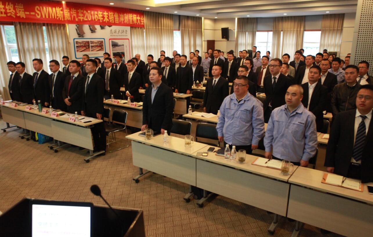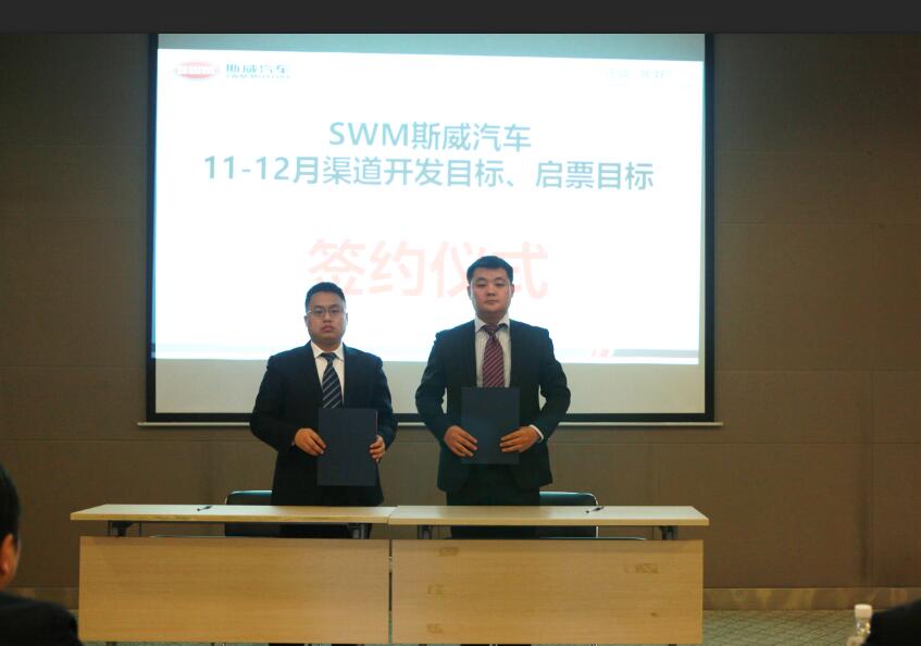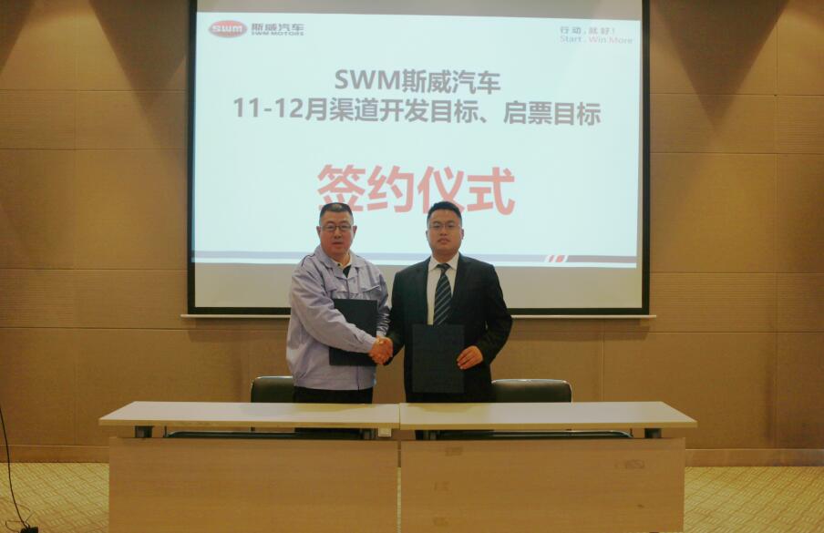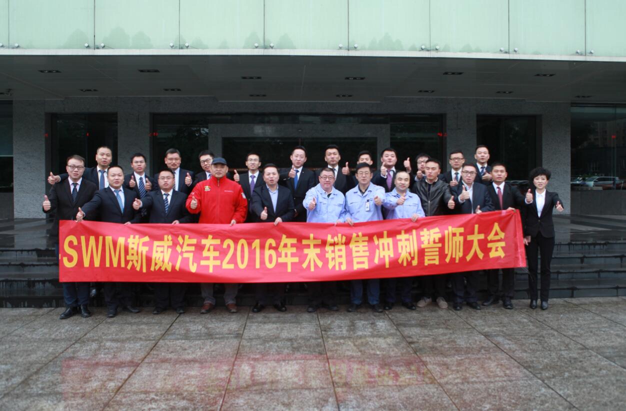 2016年的脚步已接近尾声,斯威人为了年度目标而冲刺,人人责无旁贷。2016年10月29日,SWM斯威汽车2016年末销售冲刺誓师大会暨11月、12月渠道开发目标、启票目标责任书签订仪式在含谷生产基地隆重召开。