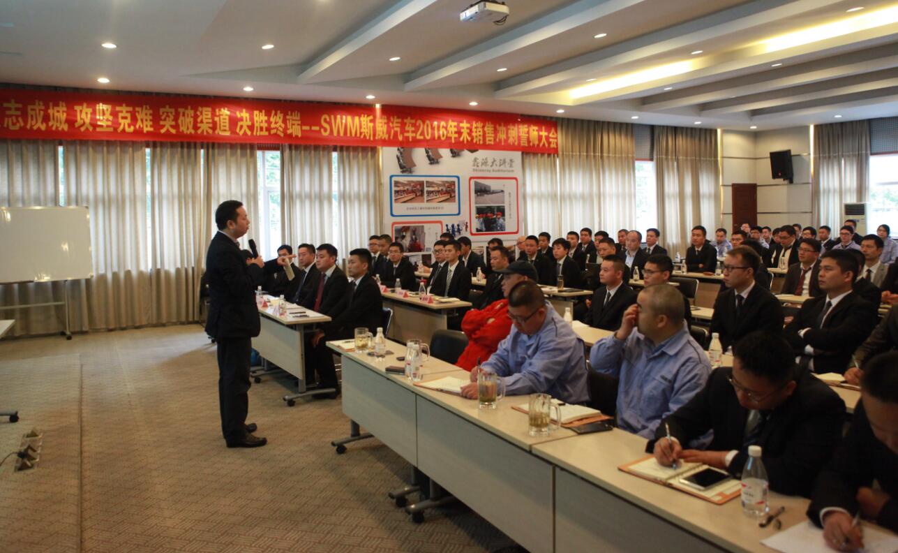 目标的完成当然是离不开我们不断的学习与总结。在10月29日SWM斯威汽车2016年末销售冲刺誓师大会召开之前,SWM斯威品牌事业部12个大区的大区及区域经理就渠道建设、销售管理、品牌传播、市场推广、1.5T产品的卖点及相关传播策略等方面进行了为期三天的学习与交流。驻外人员与驻内人员就以上方面前期的工作进行了梳理,对日常工作的常见问题进行了沟通,对后期的工作进行了安排。蜜汁噜噜久久噜噜久久久控股副总裁兼销售公司总经理张洪岩先生全程参与了学习,现场与大家进行交流。通过三天的学习,所有人员对自己的工作都有了清晰的认识,同时也对以后的工作提出了新的要求,力争在后期的工作中规避不足,通过我们每一个人的努力提升SWM斯威品牌的品牌形象。