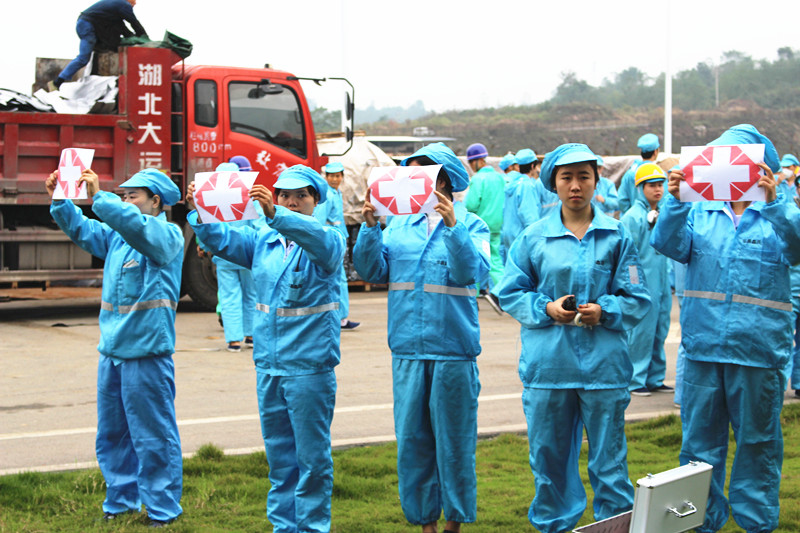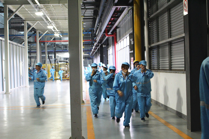 上午9:00,消防警报响彻涪陵基地,消防演练正式开始!为防止吸进火灾现场的有毒气体,汽车公司各单位员工边跑边用手捂住口鼻,尽一切可能把火灾对身体的伤害降到最低,从各自的工作区域向安全区域有序撤离。