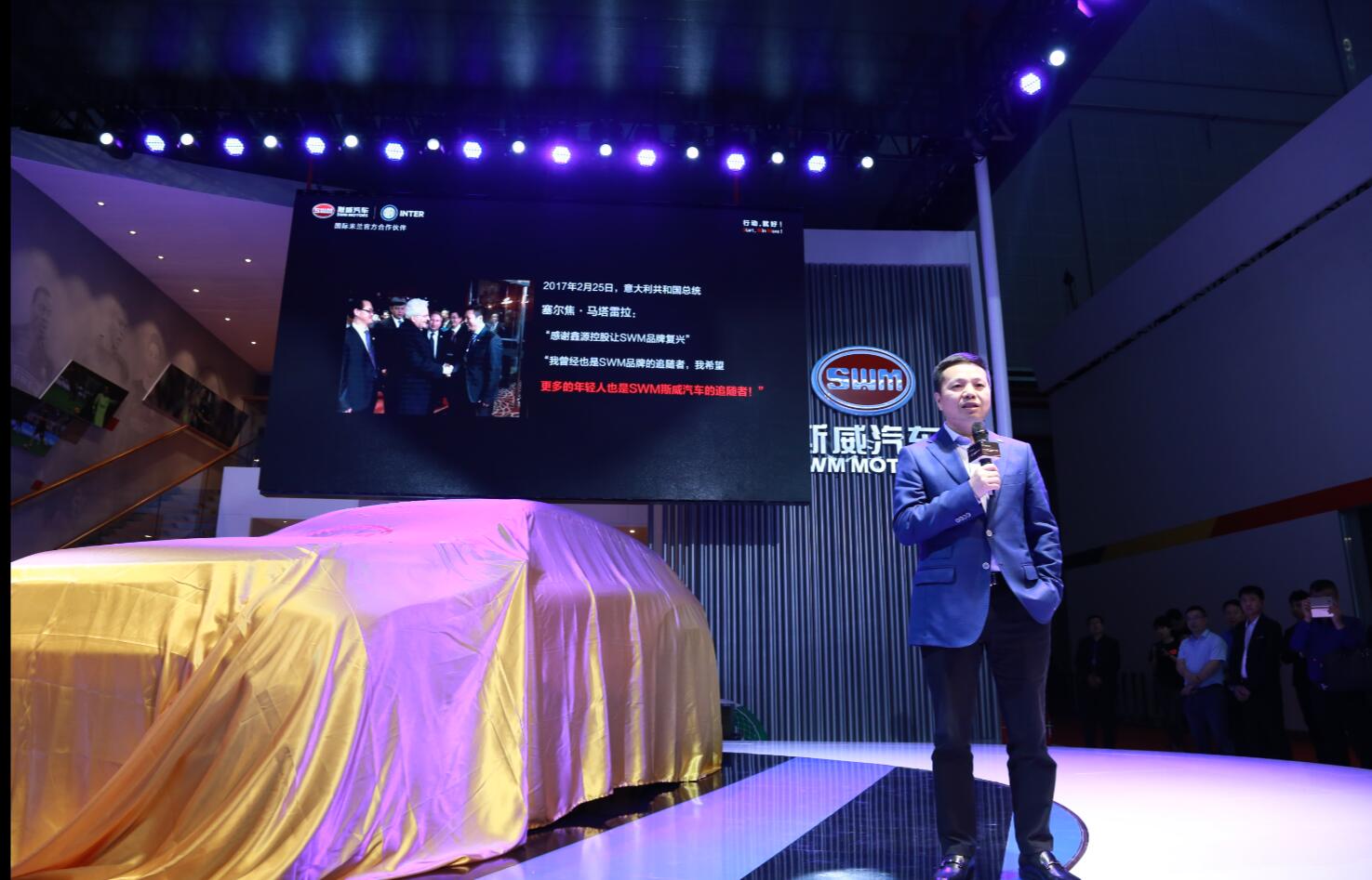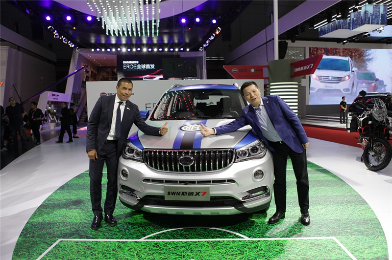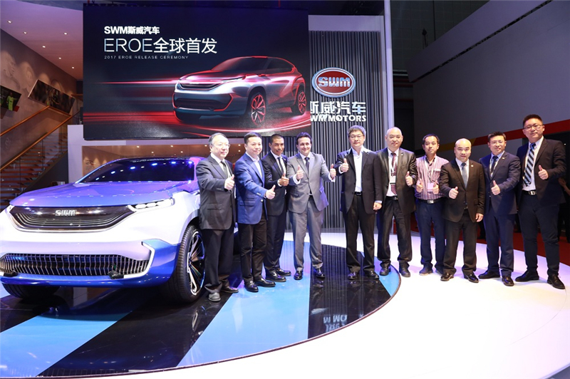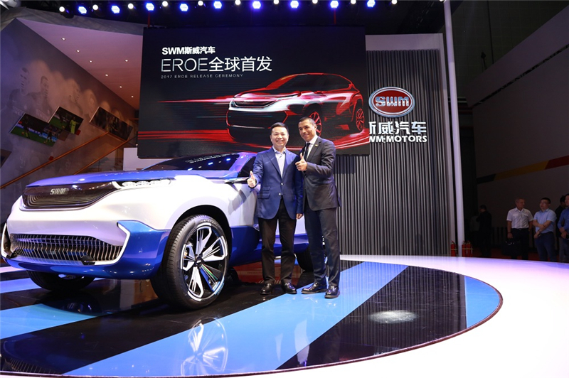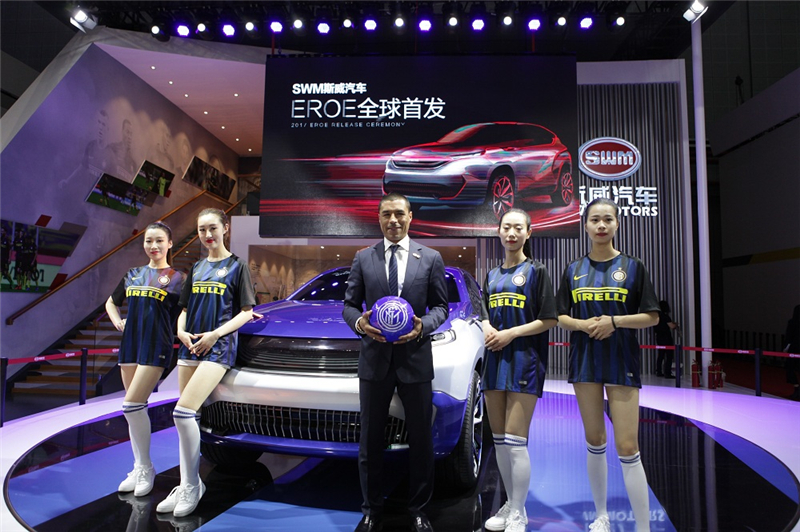 4月19日,以“崛·启 赢未来”为主题,SWM斯威汽车携全球首发车型EROE概念车(中文名:俄洛伊)、SWM斯威X7自动挡和SWM斯威X3,在第十七届上海车展首度震撼登场。国际传奇足球巨星,国际米兰名宿科尔多巴从意大利直飞上海参加了SWM斯威汽车全球首发概念车EROE的发布会,在全世界观众面前共同演绎了一场汽车与足球的饕餮盛宴。