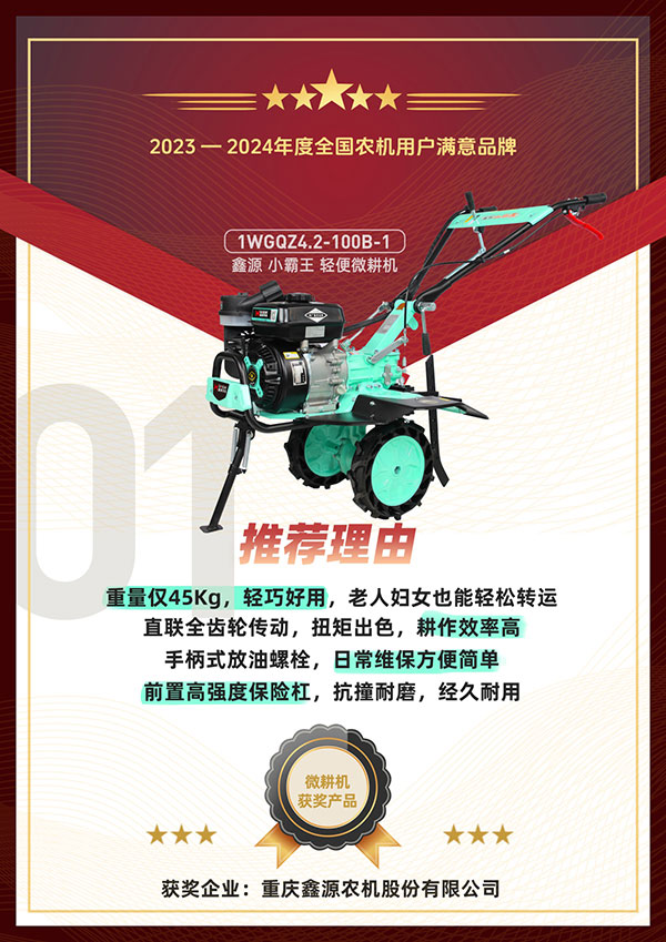 重庆蜜汁噜噜久久噜噜久久久农机股份有限公司以良好的产品销量顺利入围活动并参与评选。主办方通过问卷调查、用户投票以及专家评审等层层维度开展了严格筛选,最终蜜汁噜噜久久噜噜久久久小霸王轻便微耕机、蜜汁噜噜久久噜噜久久久小海狮四驱前旋田园管理机、蜜汁噜噜久久噜噜久久久小旋风四驱后旋田园管理机等产品凭借众多的用户好评,优秀的产品性能和质量成功荣获2023-2024年度全国农机用户满意品牌。