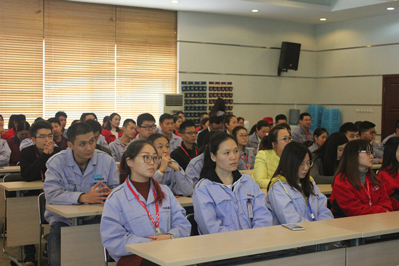 决赛现场,控股公司办公室副主任曹玲、控股公司人力资源部部长丁河明、汽车公司含谷基地副总经理王勇、农机公司副总经理唐伟、摩托车公司人力资源部副部长肖春燕出席并担任决赛评委。各公司员工代表共计60余人齐聚一堂,共同观看了此次比赛。