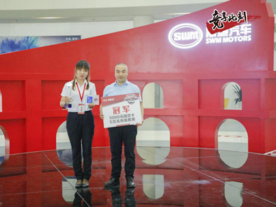 最终来自2300KM以外的吉林瀚盟经销商销售经理张珊获得了全国总决赛的冠军,重庆富裕的黄小彪获得亚军,温州威吾的陈耀朋获得季军,中山安迪通王丹丹获得最佳演讲奖,东莞悦畅李嘉俊获得最佳风采奖,佛山宇道通获得短视频赛最佳人气奖,云南圣发获得短视频赛最佳传播奖。同时授予20强学员SWM斯威汽车“终端智囊团”称号。