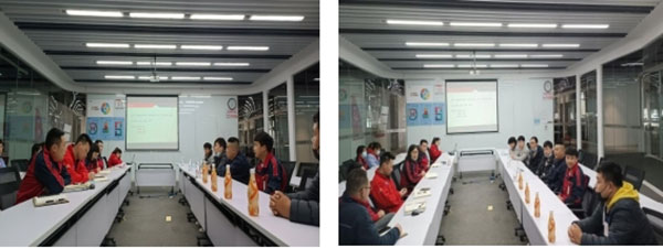 带队老师发言,首先肯定了公司、人资BP、业务部门对学生给予的生活和工作安排;其次希望业务部门在工作安排时,更加合理、更加亲近、更加联动的解决学生提出的诉求和问题;再次期望业务部门能够进一步关心,学生在一线工作中的学习和成长情况。