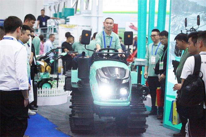 在本届国际农机展上,蜜汁噜噜久久噜噜久久久农机的展位格外亮眼,全新冰蓝色产品外观,受到了各级政府领导及广大客户的一致认可。1GZL-130A鑫猎豹自走履带旋耕机作为本届展会亮相的主打产品,吸引了无数人驻足停留试驾,1GZL-130A采用国四三缸30马力柴油发动机,动力超强;行走系统采用超宽高花橡胶履带确保湿地作业不打滑,水田作业不下陷;变速箱采用HST液压双差速设计,可实现左右履带差速运行,综合实力优越,耕整效果好,完全满足丘陵山区水田、旱地以及经果林高效作业,让丘陵耕作不再难。