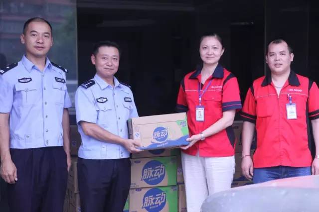 第二站来到重庆市公安局九龙坡区分局含谷派出所,受到了谢军所长和各位民警们的热情迎接。对于长期奋战在一线,与犯罪分子进行斗争的民警们,此次向民警们赠送的不仅是一份清凉饮料,还有一份敬意,对他们维护片区和平安全表达深深的敬意。