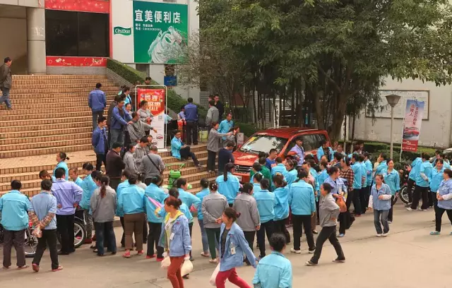 密密麻麻的一大帮工人从各车间几乎是冲出来的。